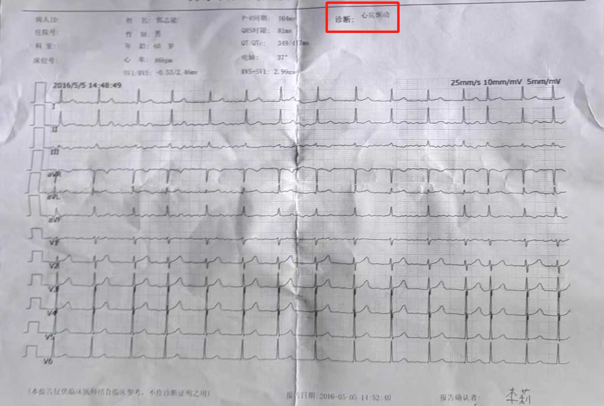 后来2016年5月份公司组织例行体检时,做常规心电图,查出来有房颤。